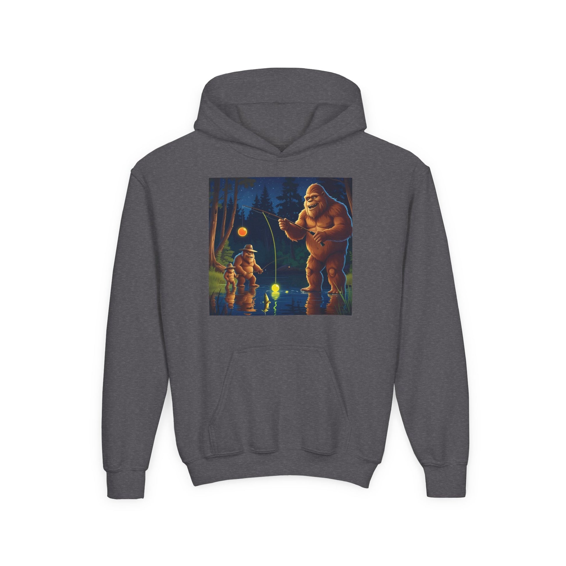Bigfoot Fishing Youth Hoodie, Adventure Sweatshirt, Outdoor Fun, Gift for Kids, Bigfoot Lovers, Hooded Sweatshirt for Camping